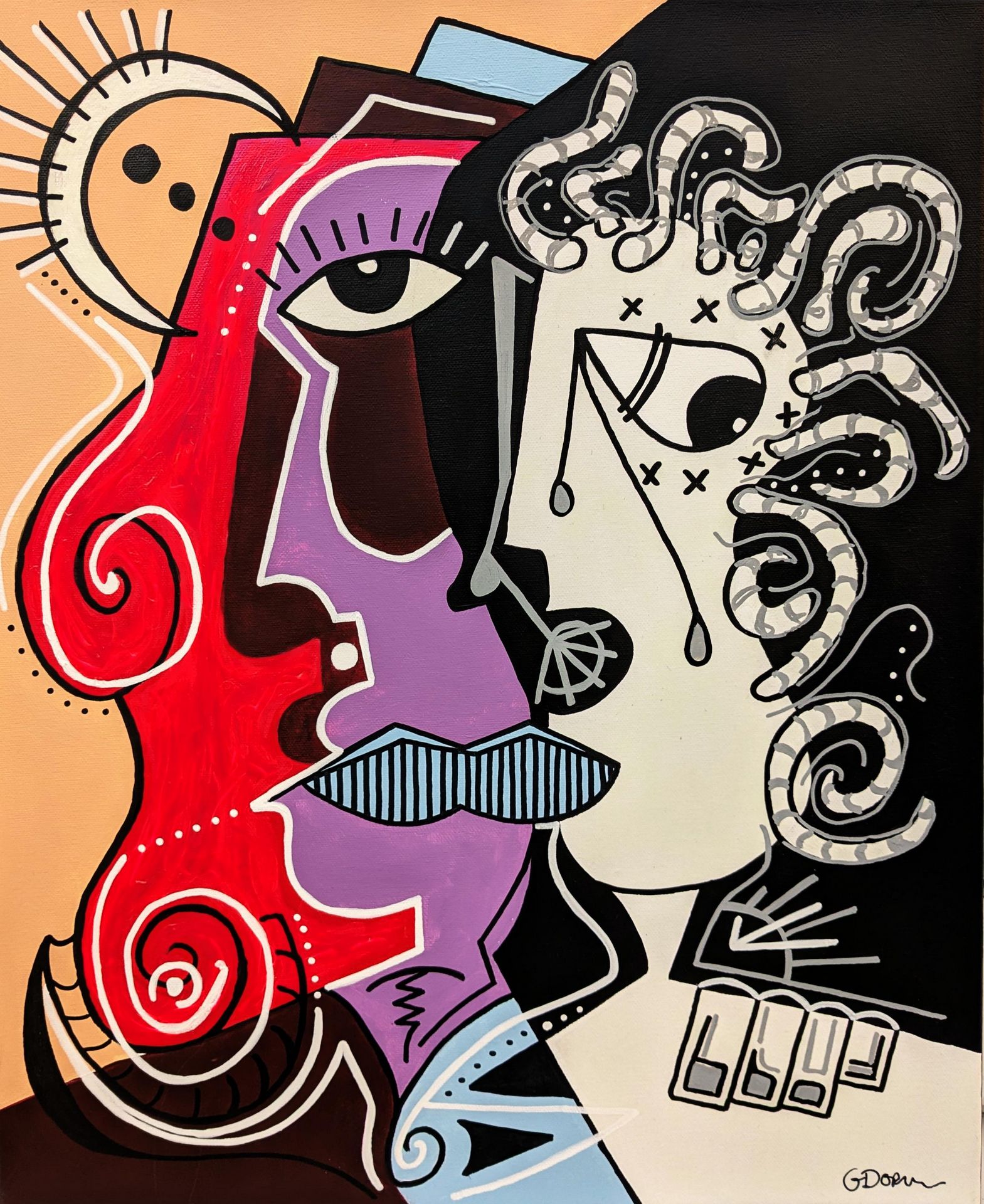 Original acrylic and Ink on canvas. It